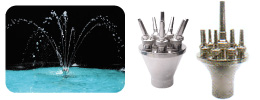 สิ่งที่ทำให้น้ำพุมีความแตกต่างกันในด้านความสวยงาม แปลกตาน่าสนใจ นั่นคือ หัวน้ำพุ ซึ่งอาจพุ่งขึ้นเป็นลำ หรือเป็นฝอย หัวน้ำพุมีการพัฒนารูปแบบให้งดงาม อาจพุ่งออกจากจุดศูนย์กลาง เป็นช่อเป็นชั้นลดหลั่นกัน หรือพุ่งจากรอบบ่อเข้ามาจุดศูนย์กลาง การเลือกใช้หัวน้ำพุ การเลือกใช้หัวน้ำพุชนิดใดนั้นต้องพิจารณาจาก บ่อ สระ หรือภาชนะ ให้มีความสัมพันธ์กันคือ ขนาดของบ่อ สระ หรือภาชนะต้องพอเหมาะพอดีกับสระน้ำที่พุ่งออกมาจากหัวน้ำพุ บ่อ หรือสระที่กว้างมาก ถ้าใช้หัวน้ำพุเล็กเกินไป ก็จะกลายเป็นน้ำที่พุ่งออกจากปากปลา เพื่อจับแมลงกิน แต่ถ้าหัวน้ำพุใหญ่มาก น้ำจะพุ่งเลยขอบสระ และน้ำก็จะหายไปทีละเล็กทีละน้อยต้องเติมน้ำกันบ่อยๆ อีกทั้งรอบสระก็จะเฉอะแฉะไปหมด