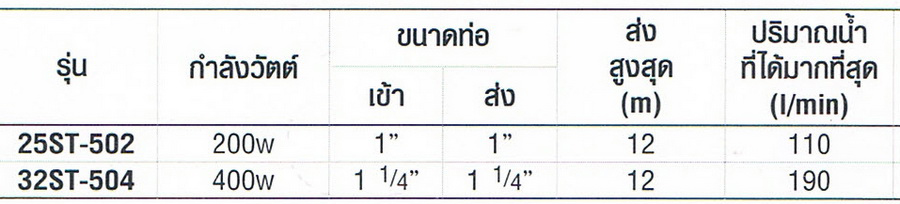 250W ขนาดท่อ 1" ปริมาณน้ำมากสุด 105 L/min ส่งสูงสุด 30M